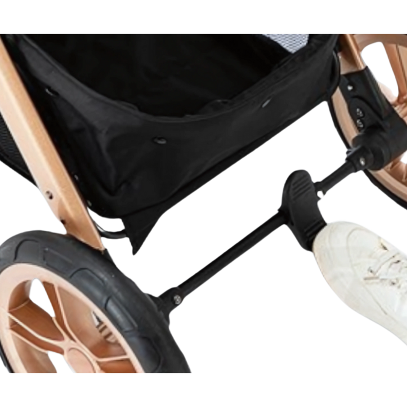 Nadzór i bezpieczeństwo na wyciągnięcie nogi. System hamulcowy wózka umożliwia kontrolę dzięki łatwej obsłudze i responsywnemu projektowi. Niezależnie od tego, czy idziesz na spokojny spacer, czy robisz nagłe zatrzymanie, nasz system hamulcowy zapewnia stabilność i spokój ducha.