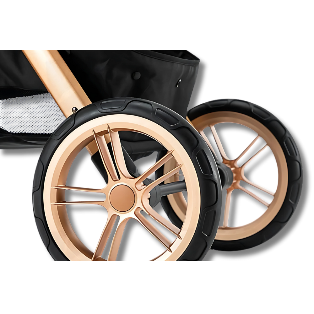Doświadcz najbardziej płynnej jazdy dla swojego malucha z systemem zawieszenia. Nasz wózek bez trudu sunie po każdym terenie, zapewniając niezrównany komfort. Od nierównych chodników po przygodowe ścieżki, Twoje dziecko może cieszyć się delikatną i wyściełaną podróżą.
