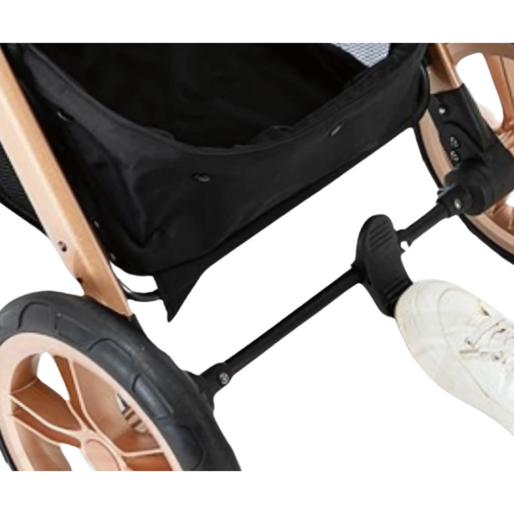 Nadzór i bezpieczeństwo na wyciągnięcie nogi. System hamulcowy wózka umożliwia kontrolę dzięki łatwej obsłudze i responsywnemu projektowi. Niezależnie od tego, czy idziesz na spokojny spacer, czy robisz nagłe zatrzymanie, nasz system hamulcowy zapewnia stabilność i spokój ducha.