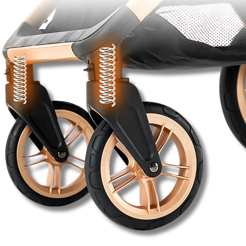 Doświadcz najbardziej płynnej jazdy dla swojego malucha z systemem zawieszenia. Nasz wózek bez trudu sunie po każdym terenie, zapewniając niezrównany komfort. Od nierównych chodników po przygodowe ścieżki, Twoje dziecko może cieszyć się delikatną i wyściełaną podróżą.