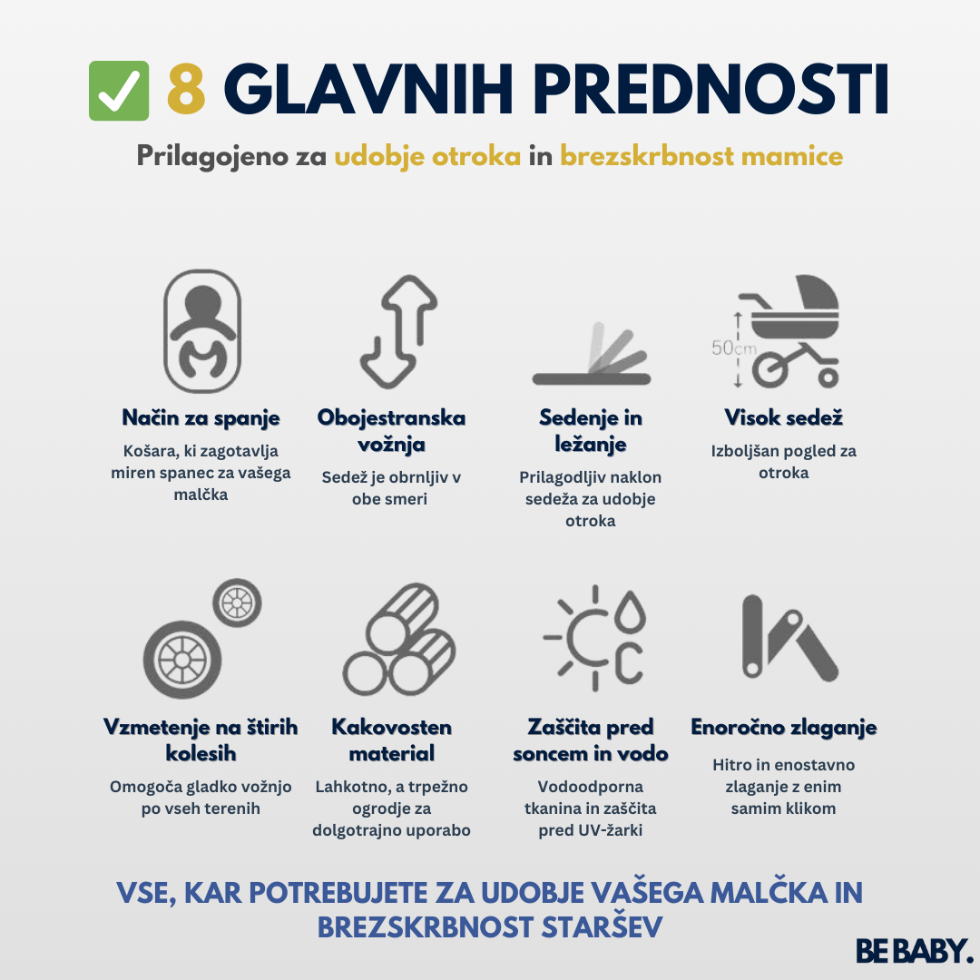 Wyróżnia się swoją wszechstronnością i ceną - łączy kosz, wózek i fotelik samochodowy w jednym eleganckim designie. Oferuje również najwyższy komfort, styl i bezpieczeństwo.