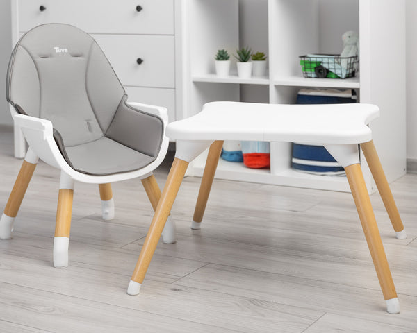 Tuva to wysokie krzesełko, które łączy elegancki skandynawski design z najwyższą funkcjonalnością. Przeznaczone jest dla rodziców, którzy chcą zapewnić swoim dzieciom komfort, bezpieczeństwo i elastyczność w jednym produkcie. Dzięki łatwej transformacji w zestaw krzesła i stołu oraz wysokiej jakości materiałom, Tuva jest doskonałym wyborem dla każdego domu.