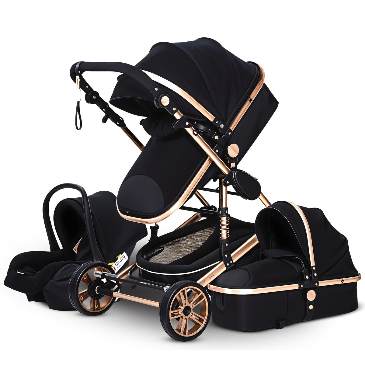Wiele funkcji Wózek dziecięcy 3-w-1 to wszechstronny środek transportu, który można używać jako wózek i jako siedzenie. Wózek można zazwyczaj ustawić w różnych pozycjach, aby dostosować się do potrzeb dziecka, w tym w pozycji siedzącej i leżącej. Można go łatwo przekształcić w siedzenie, co umożliwia płynne przejście między jazdą samochodem a spacerami.
