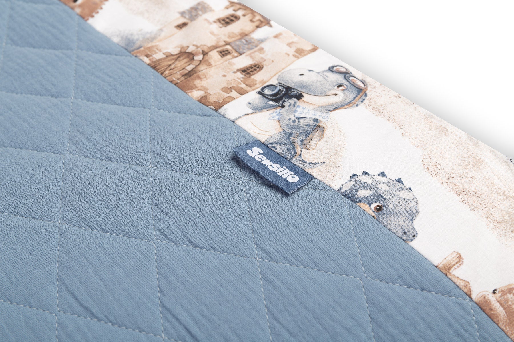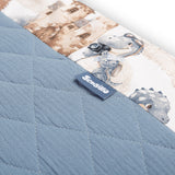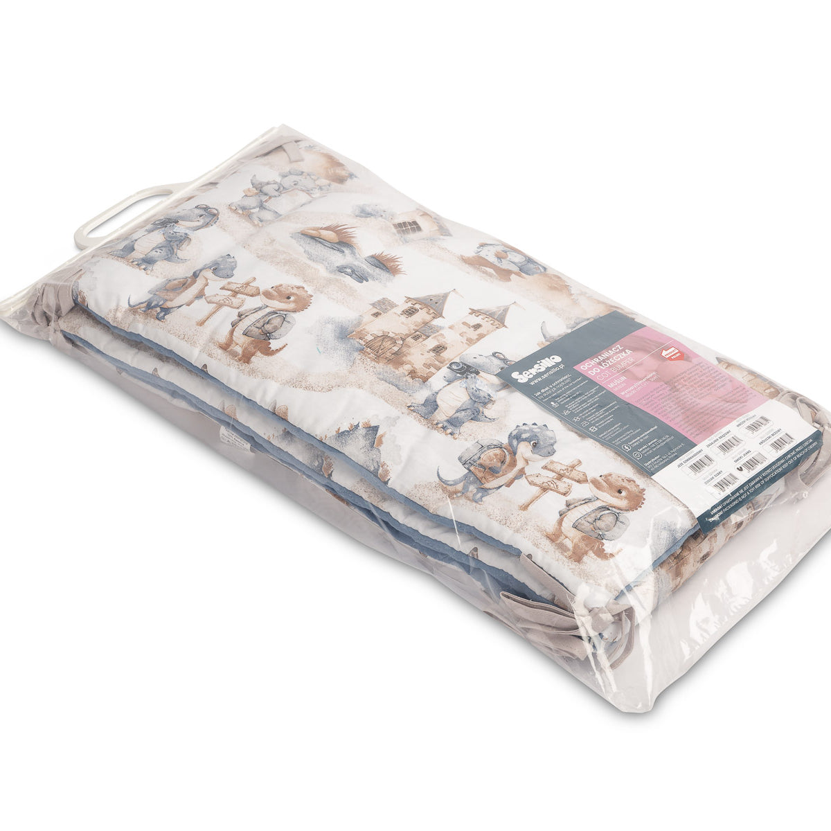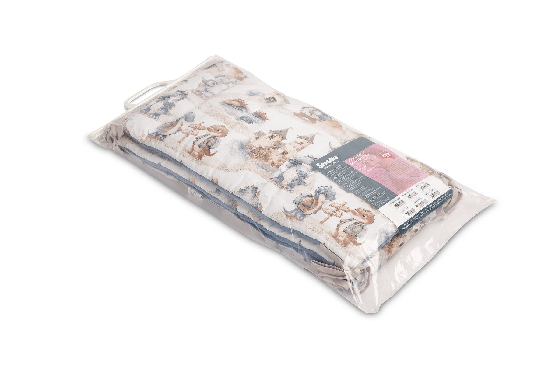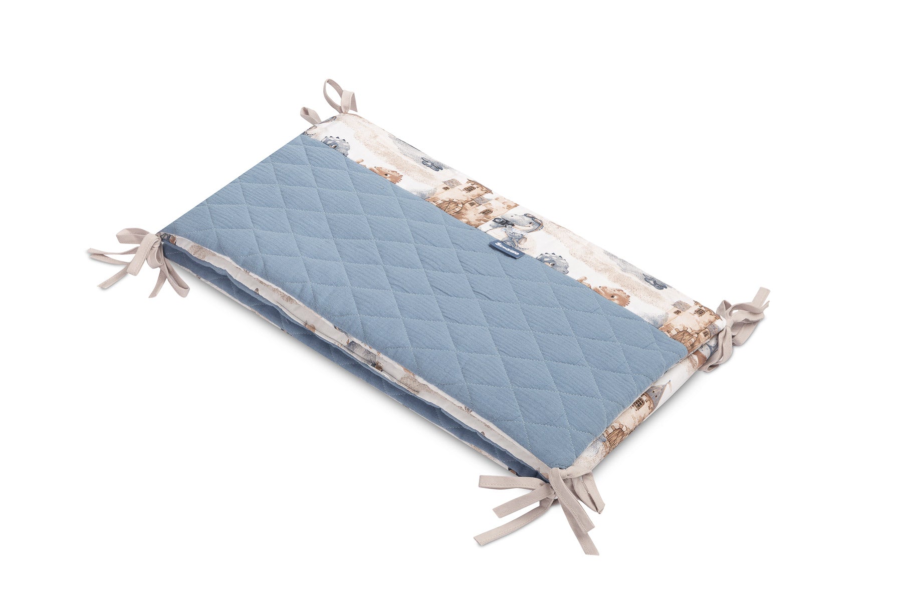 Ochronny brzeg do łóżeczka pasuje do każdego standardowego łóżeczka dziecięcego. Brzeg wykonany jest z miękkiej drukowanej bawełny i przyjemnego w dotyku muślinu. Wypełnienie z poliestru ochroni dziecko przed urazami podczas poruszania się po łóżeczku. Brzeg pozostaje na swoim miejscu dzięki paskom, którymi mocuje się do szczebelków łóżeczka. Przeznaczony jest do łóżeczka o wymiarach 120x60 cm. Brzeg będzie doskonałym dodatkiem do wyposażenia dziecięcego.