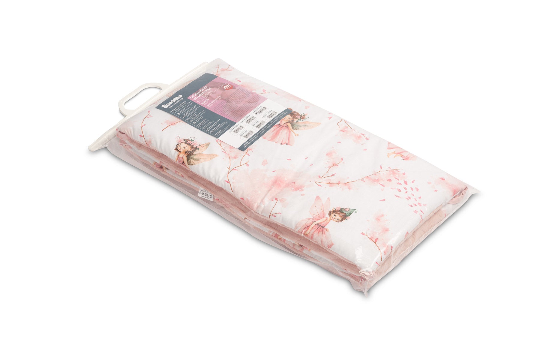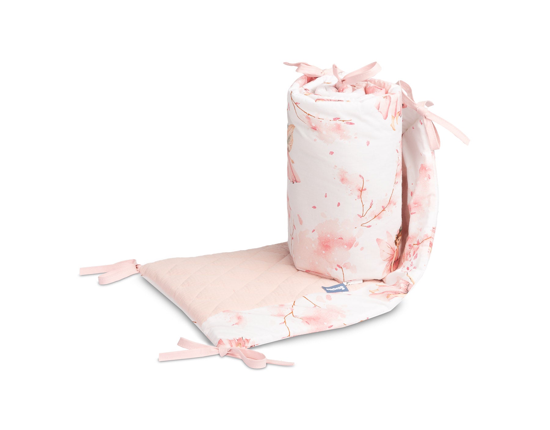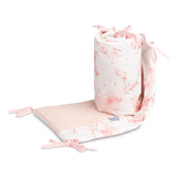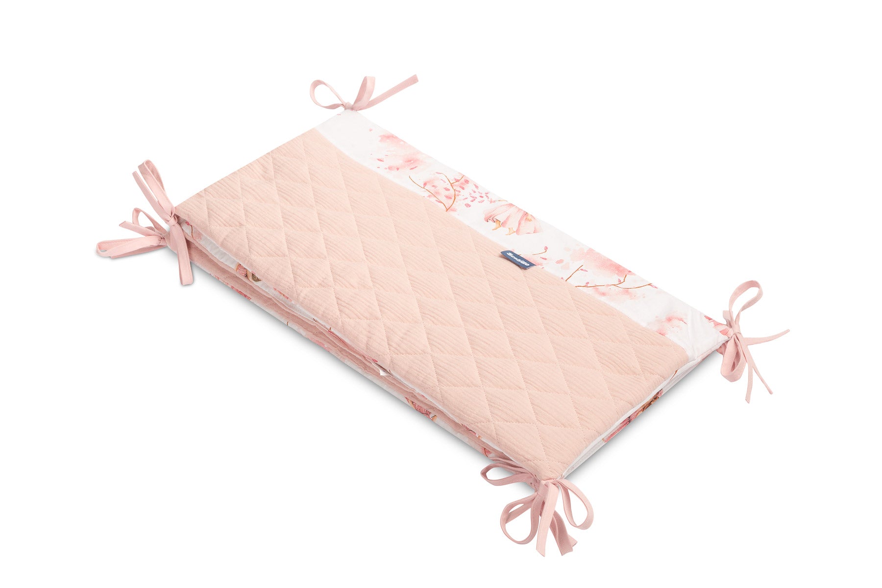 Ochronny brzeg do łóżeczka pasuje do każdego standardowego łóżeczka dziecięcego. Brzeg wykonany jest z miękkiej drukowanej bawełny i przyjemnego w dotyku muślinu. Wypełnienie z poliestru ochroni dziecko przed urazami podczas poruszania się po łóżeczku. Brzeg pozostaje na swoim miejscu dzięki paskom, którymi mocuje się do szczebelków łóżeczka. Przeznaczony jest do łóżeczka o wymiarach 120x60 cm. Brzeg będzie doskonałym dodatkiem do wyposażenia dziecięcego.