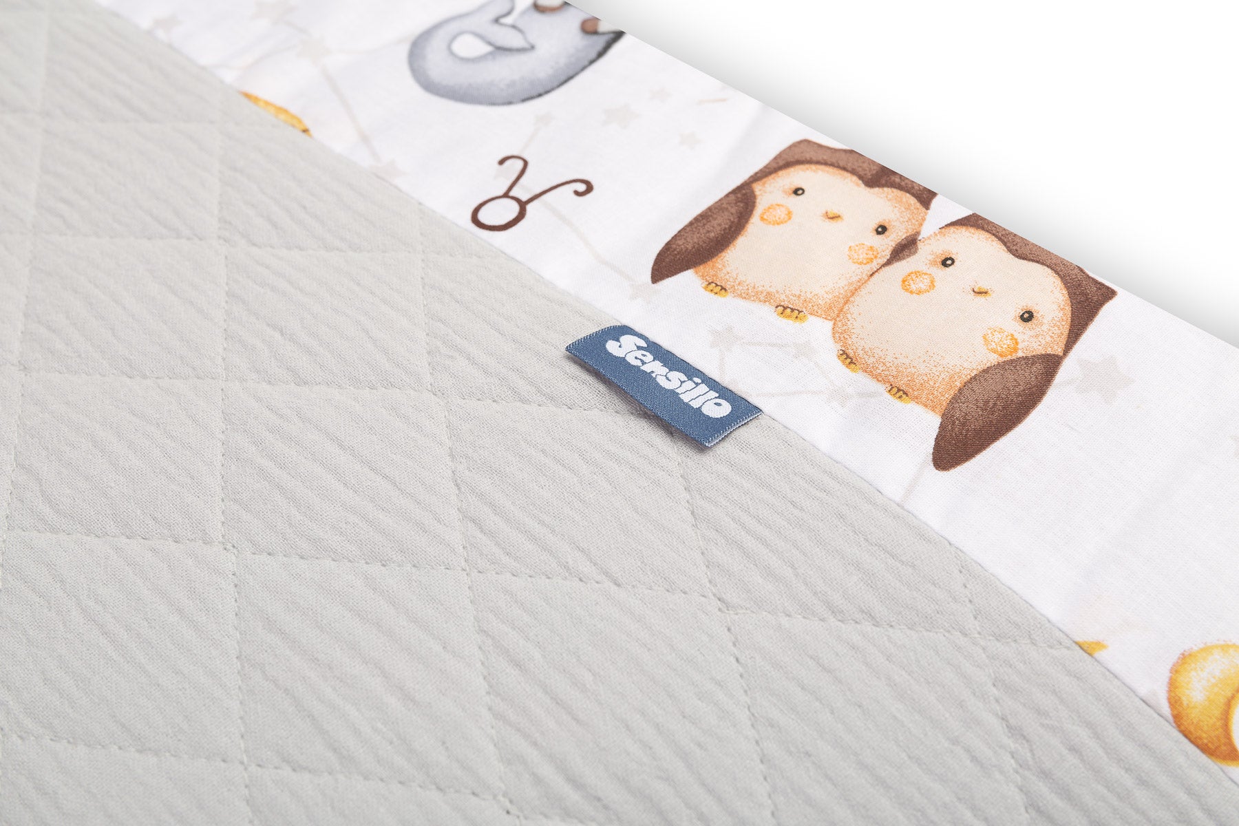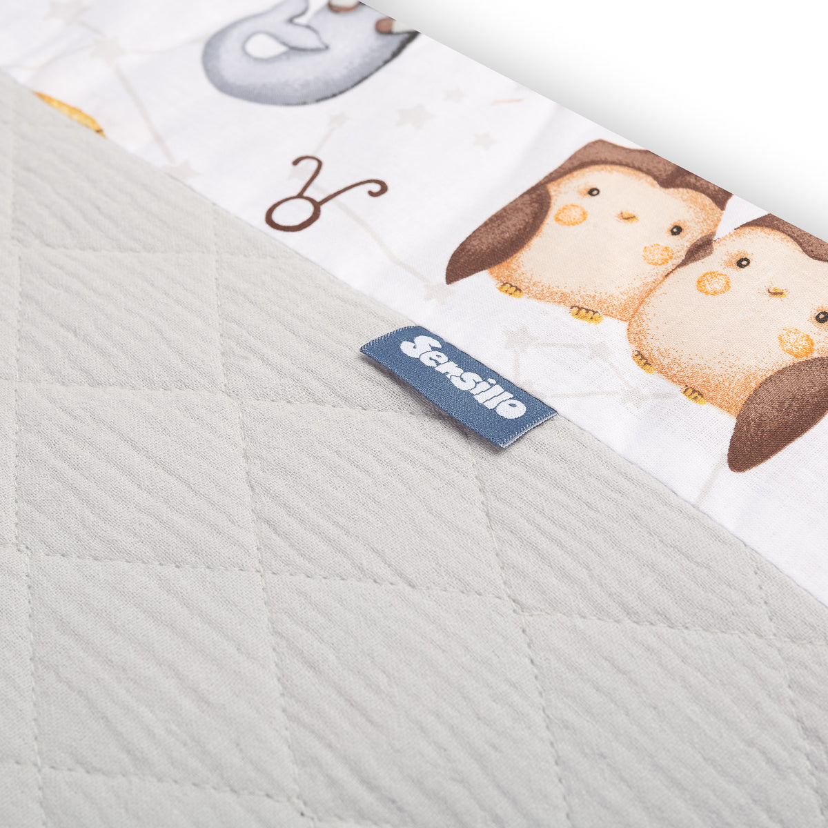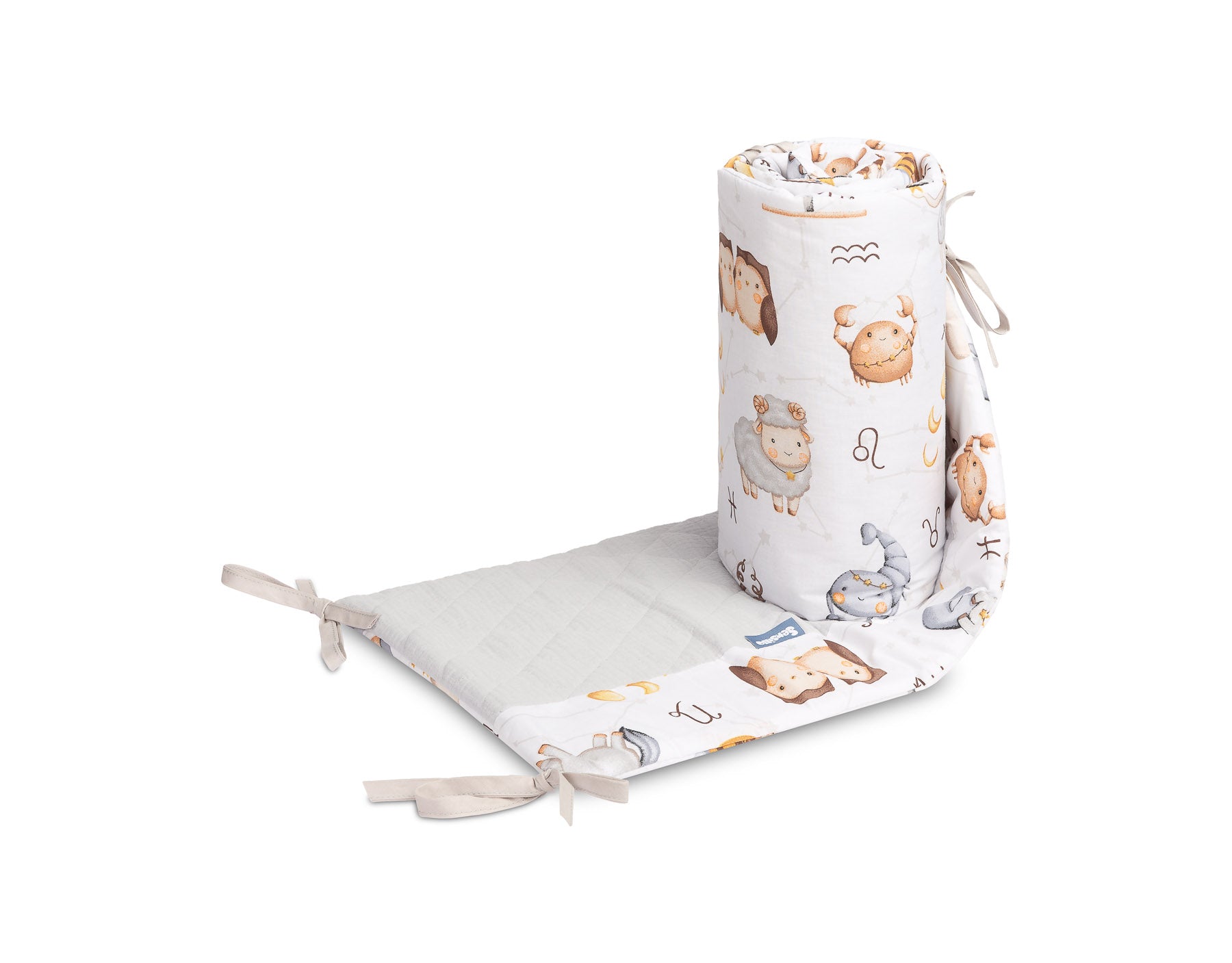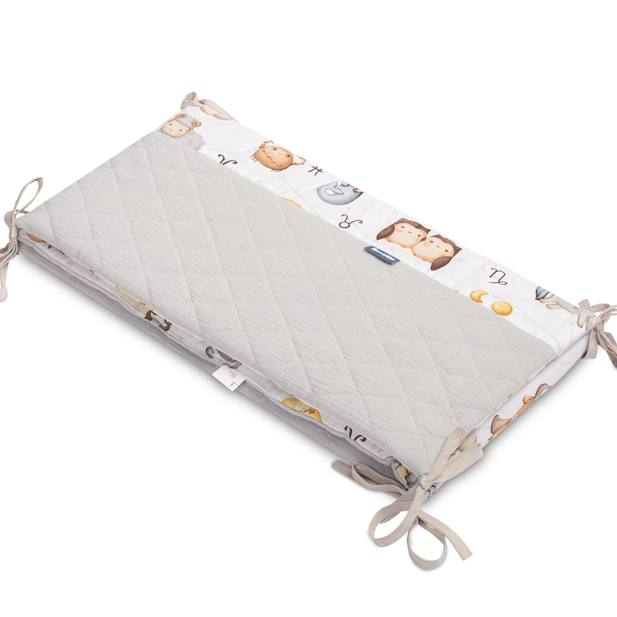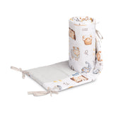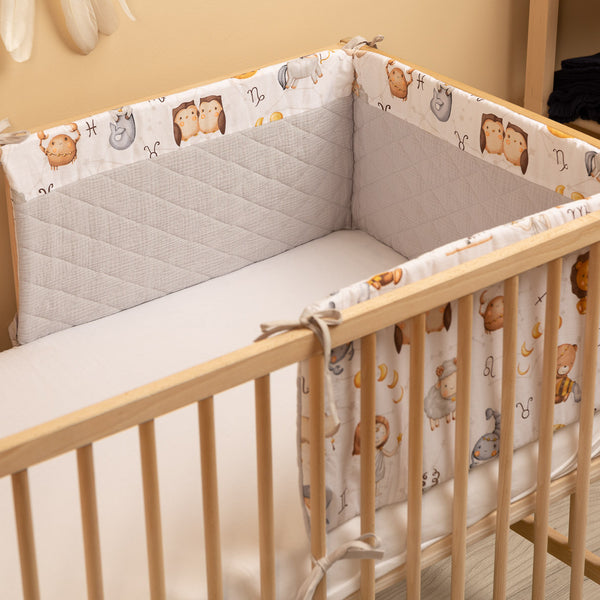 Ochronny brzeg do łóżeczka pasuje do każdego standardowego łóżeczka dziecięcego. Brzeg wykonany jest z miękkiej drukowanej bawełny i przyjemnego w dotyku muślinu. Wypełnienie z poliestru ochroni dziecko przed urazami podczas poruszania się po łóżeczku. Brzeg pozostaje na swoim miejscu dzięki paskom, którymi mocuje się do szczebelków łóżeczka. Przeznaczony jest do łóżeczka o wymiarach 120x60 cm. Brzeg będzie doskonałym dodatkiem do wyposażenia dziecięcego.